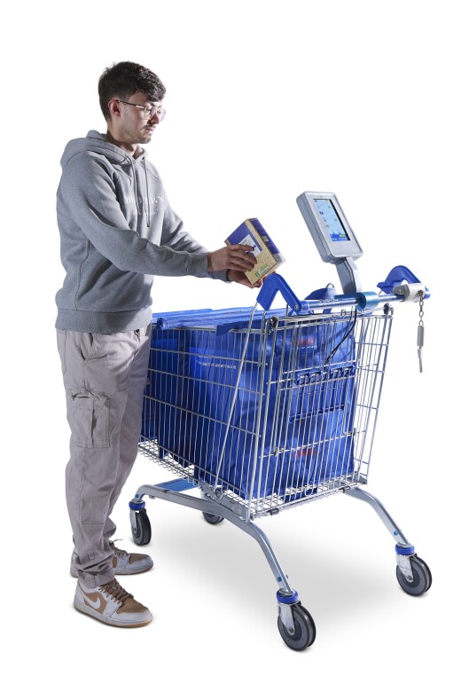 Customers tap in via loyalty card, setting their spend limit. The scanner releases from the dock and pairs to the trolley using NFC. A motion sensor activates the scanner only when needed. As items are scanned, the four caster-mounted load cells verify the weight. If spend limits are reached and items aren’t scanned, the trolley’s wheel locks activate—ensuring a secure, frictionless, and modern retail experience.