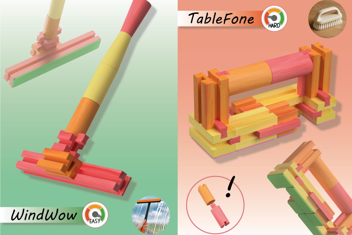 Fine motor skills are one of the key physiological factors in people’s lives, letting them manipulate their hands, feet and face. Delay in fine motor skills may interfere with children’s early childhood stage, impacting their independence, self-esteem and daily activities. CleanCraft STEM Building Blocks aims to stimulate children’s fine motor control by an introduction of playful and imaginative experiences. Various form blocks, shaped as cubes, long and short rectangular prisms, cylinders and cones, let a child to build their own non-electrical cleaning tools. With CleanCraft children are able to explore pretend-play and experience adult responsibilities through household cleaning activities. The playfulness of the concept reinforces healthy relationships between children and cleaning activities, while providing high stimulation to their cognitive development and encouragement of fine motor control, such as change in grip patterns, eye-hand coordination, hand and finger strengths, precision, control and more.