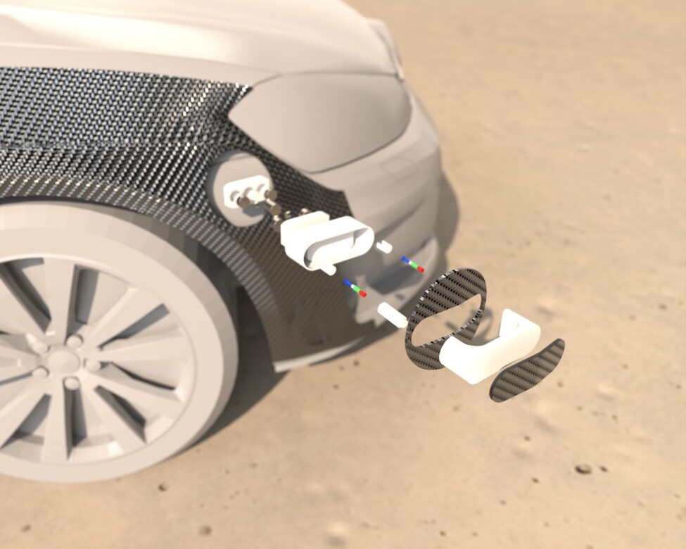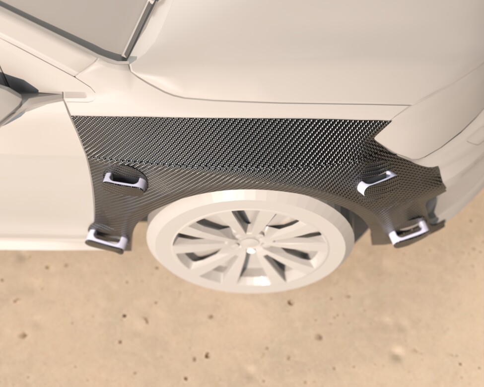 For my project, I designed a non-destructive magnetically attached widebody overfender for casual car enthusiasts within the aftermarket automotive industry. This new product replaces the bolt-on, highly destructive aspects of traditional widebody overfenders by offering customers a more streamlined, accessible, hot-swappable alternative, requiring no specialist tools or professional experience to install or remove. This is achieved with the incorporation of an array of small form factor switchable magnet assemblies, with a push-to-open spring-operated handle for each, all of which are mounted to the main body at multiple load bearing points and sit flush with the bodywork to achieve a hidden hardware look.