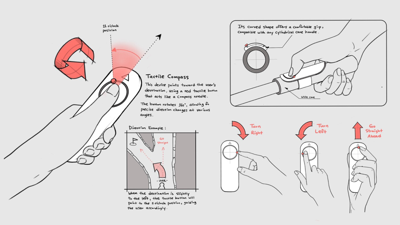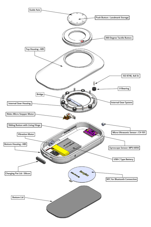 The PAW Tactile Wayfinder addresses these issues through intuitive navigation. Its innovative 360-degree tactile button clearly indicates directions via subtle feedback, enabling effortless orientation without heavy auditory reliance. Integrated ultrasonic sensors detect obstacles within 1.5 meters, providing stronger vibrations as users approach hazards for safe mobility.