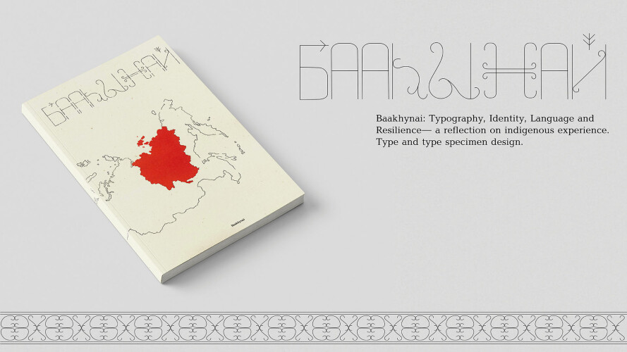 Baakhynai is a typeface designed for the Sakha language, spoken in the Sakha Republic (northeastern Siberia). The region, known for its harsh climate, was colonised by Russia in the 17th century but remains home to the Indigenous Sakha people. In Sakha, ‘baakhynai’ refers to someone of both Sakha and Russian heritage—a dual identity shaped by colonial history. This typeface reflects that perspective, aiming to celebrate Sakha identity, raise awareness of ongoing cultural erasure, and advocate for Indigenous rights. Its design draws from traditional Sakha embroidery, emphasizing themes of nature and spirituality, and echoes the fragility and resilience found in both language and craft. The letterforms can form not just words, but patterns, symbolizing the adaptability and richness of Sakha culture. Inspired by Indigenous literature, especially my grandfather’s Sakha poetry, Baakhynai is both a practical tool and a personal, emotional reflection on identity and language.