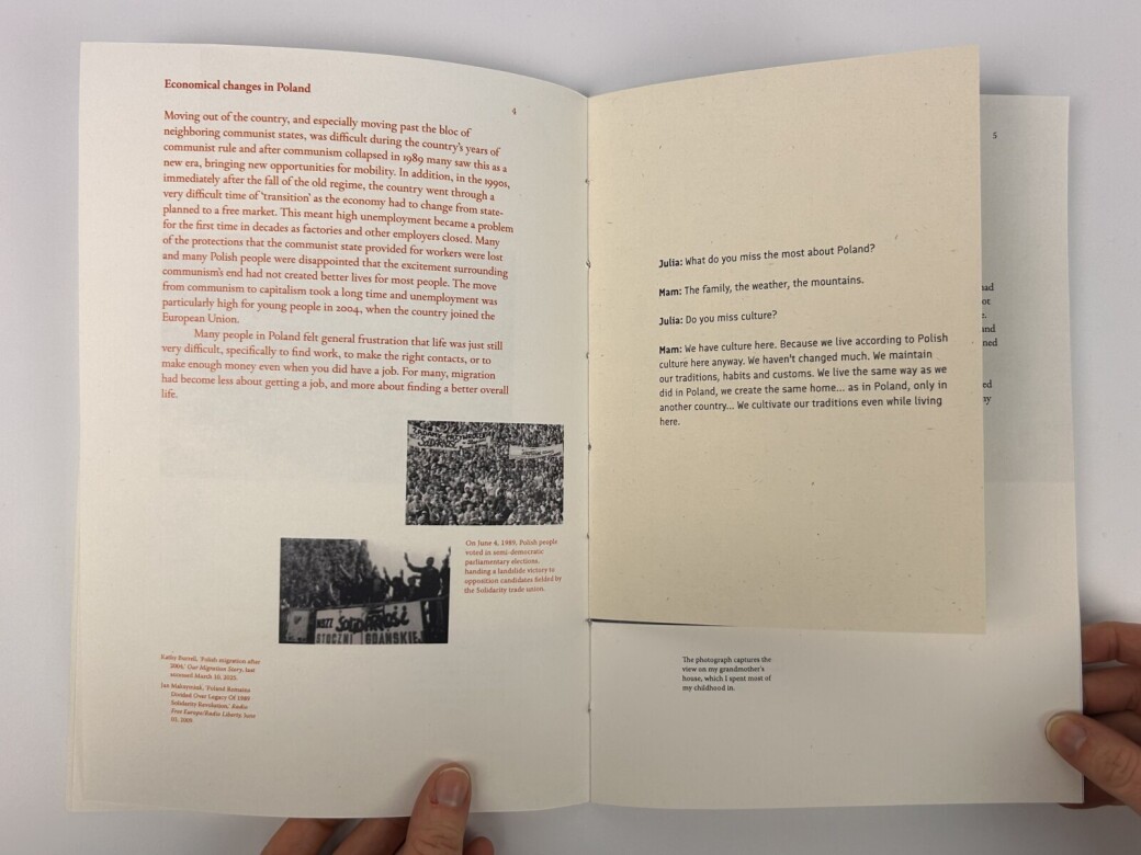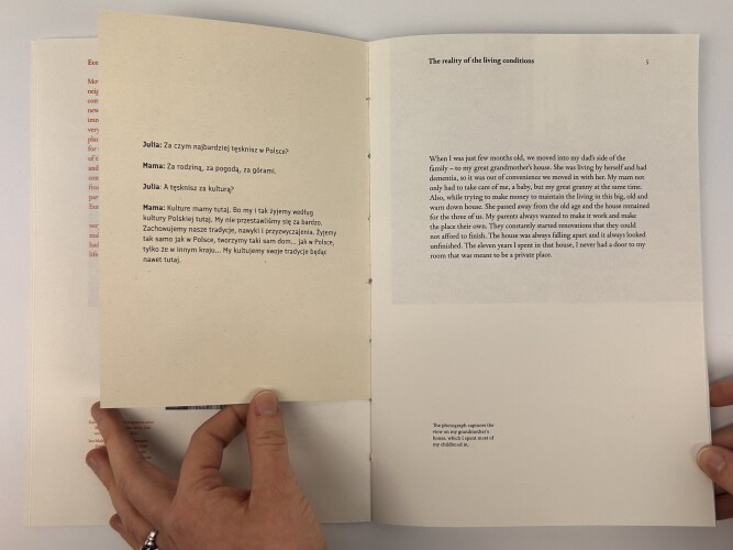 The aim for this project was to visualise the interaction between two cultures to create an understanding and the sense of belonging through sharing personal experiences. The publication communicates facts of why people were pushed out of Poland, while also sharing a story of a child's perspective at different stages in their life of that process.